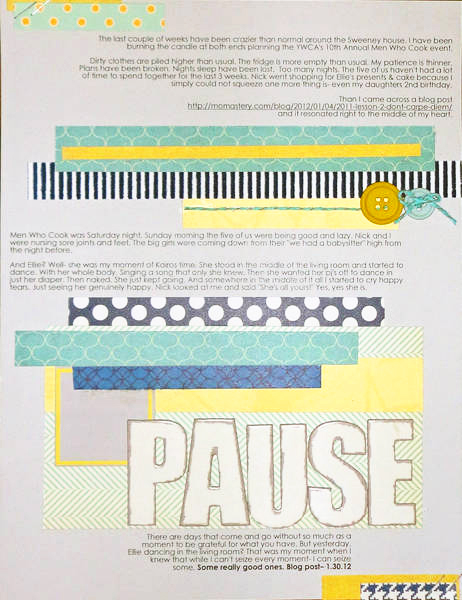 I said I was going through a stipping phase right? I created this photoless layout for my Book of Me. I took the journaling directly from my blog post last week.http://nkbsweeney.blogspot.com/2012/01/happy-tears.html